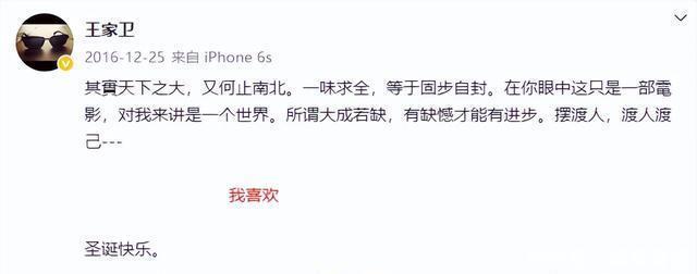 当时这部电影上映后,口碑很差,然而王家卫却不服,于是他在社交平台上发文称“我喜欢”。